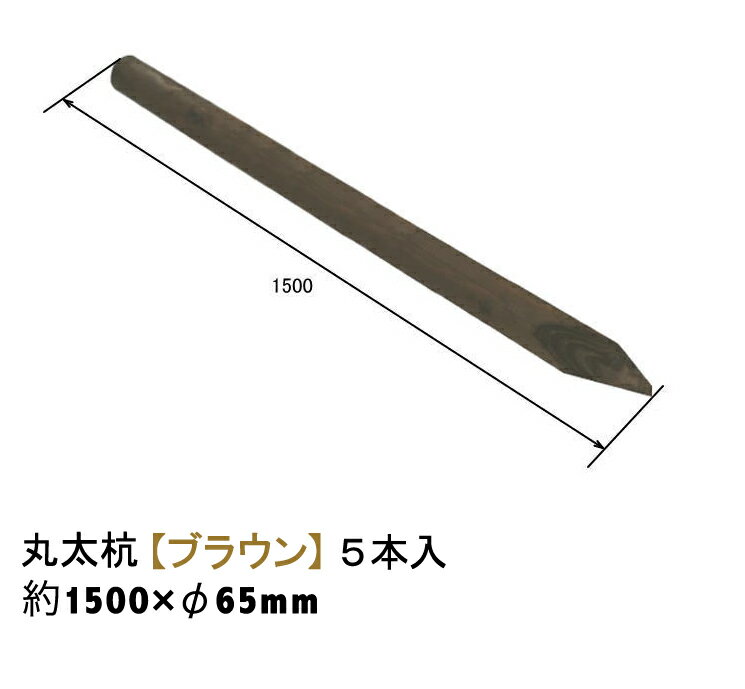 国産 杉 丸太杭【ブラウン塗装仕上げ:防腐防蟻処理済】しっかり&長持ち 約1500mm×φ65mm(5本入り)【丸太柵/支柱/木杭/丸太杭/ローリング/丸棒杭/ガーデニング/ACQ/木材/木柵/進入防止/植栽/天然木】