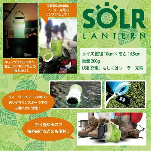 ソーラー充電 防災 アウトドア SOLR LANTERN (ソーラーランタン) Standardシリーズ 防水 たためるランタン LED USB充電