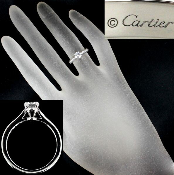 カルティエ ソリテール 0.42ct G-VVS1-3EX ダイヤモンド リング Pt950 ♯47【中古】